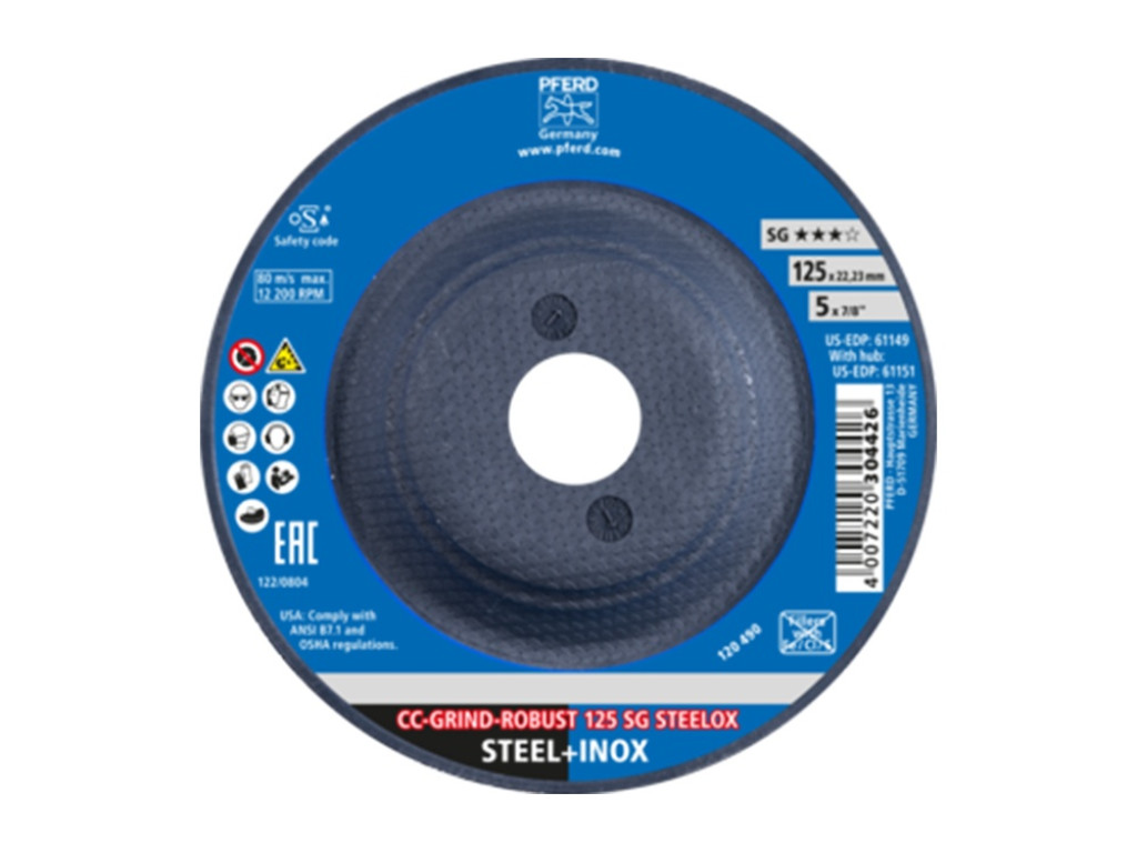 PFERD CC-GRIND-ROBUST Slijpschijf SG Steelox - 125 mm. Voor staal en INOX met hoge slijpvriendelijkheid en zeer hoge standtijd.