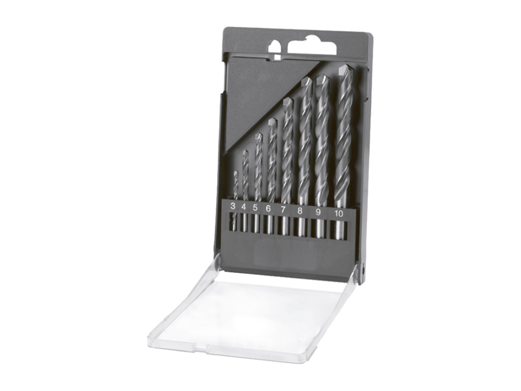 De 8-delige borenset is gevuld met onderstaande hardmetaal spiraalboren uit artikelgroep 11.600:
