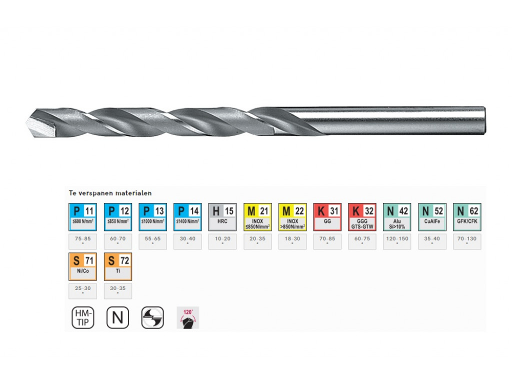 - Hardmetaal boor (HM-tip) Ø 7 mm