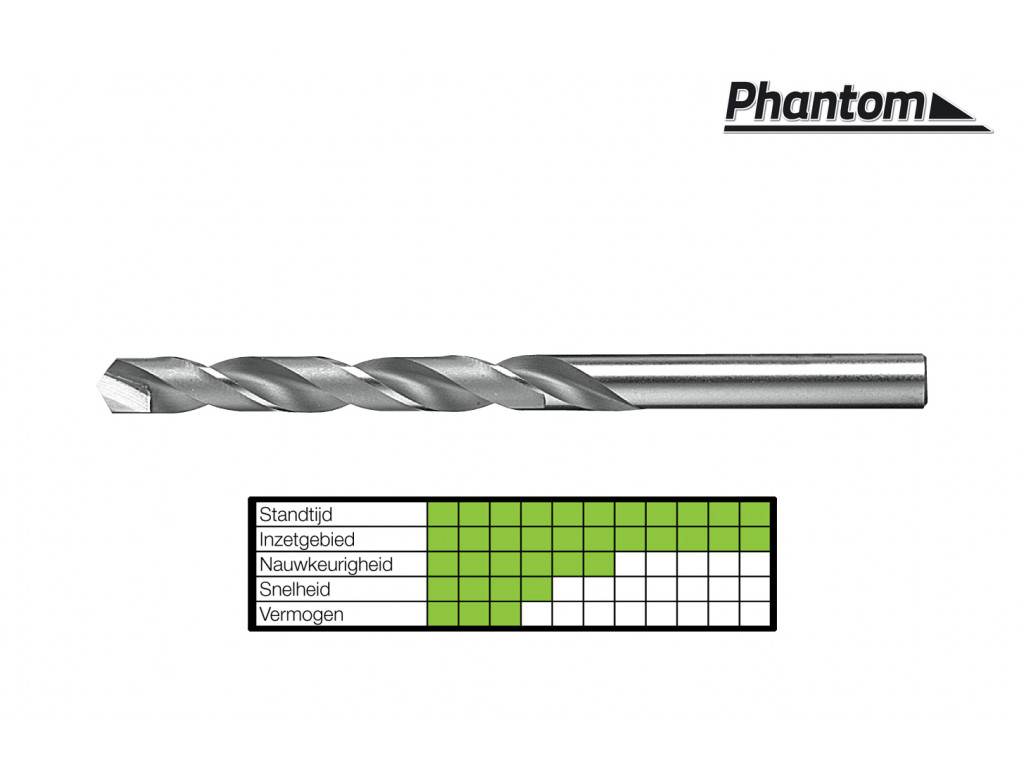 Phantom borenset met HM-tip spiraalboren, voor hand- en machinaal gebruik. De Phantom HM-tip boren (DIN 338N) hebben een cilindrische schacht en spaanhoek van 3 graden. De boren zijn uitgevoer met hardmetaal snijkant.
