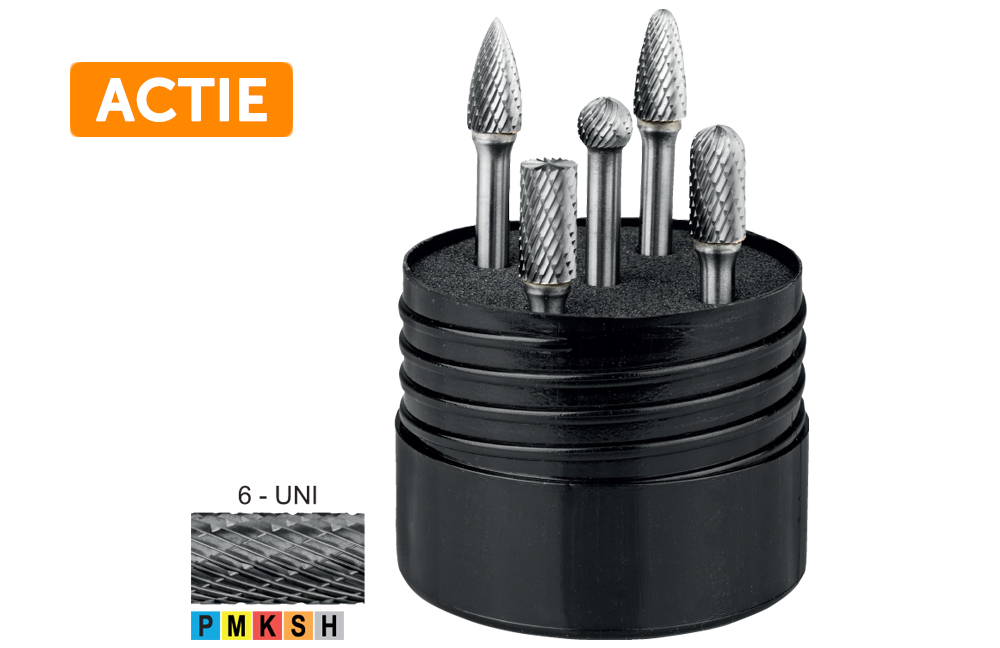 Actie: Set HM Stiftfrezen, 5-delige stiftfrezenset (UNI).