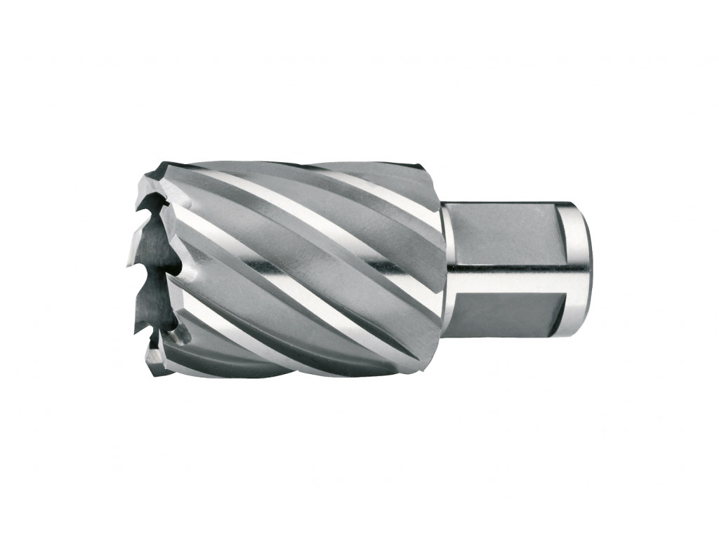 De Phantom HSS Kernboren (korte uitvoering) zijn uitgevoerd met 2-vlaks Weldon opname (diam. 19 mm) en een extra gat voor snelwisselopname. De korte uitvoering van de Phantom HSS kernboren heeft een snijdiepte / diepte maat van 30 mm.
