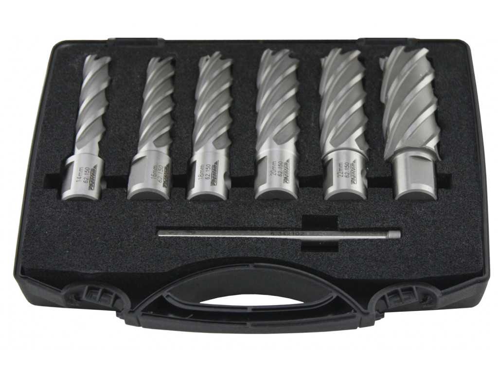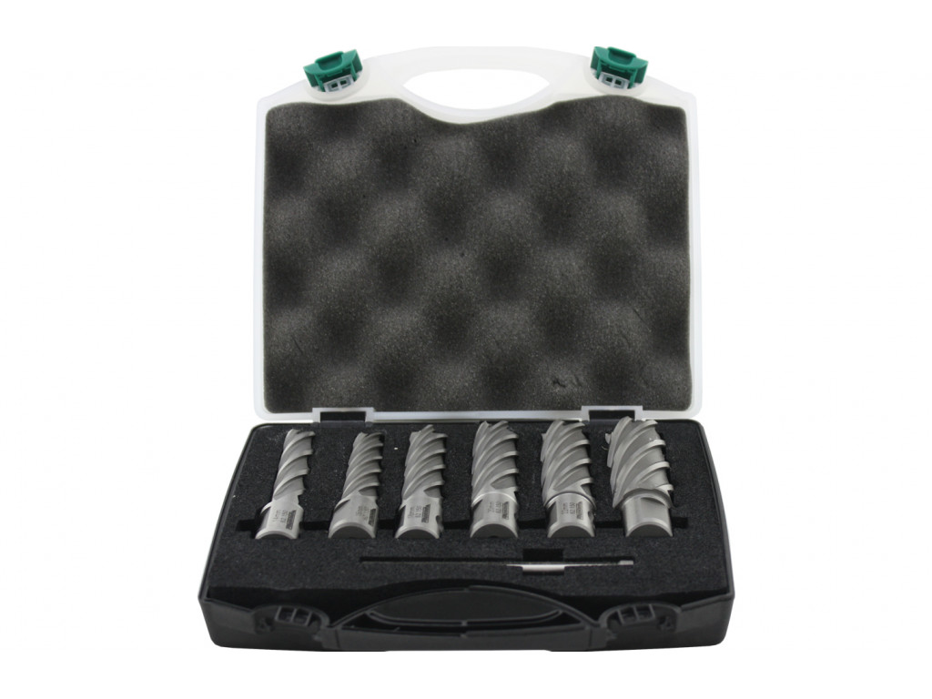 Phantom kernboor set gevuld met 6 stuks HSS kernboren en bijbehorende uitwerpstift.