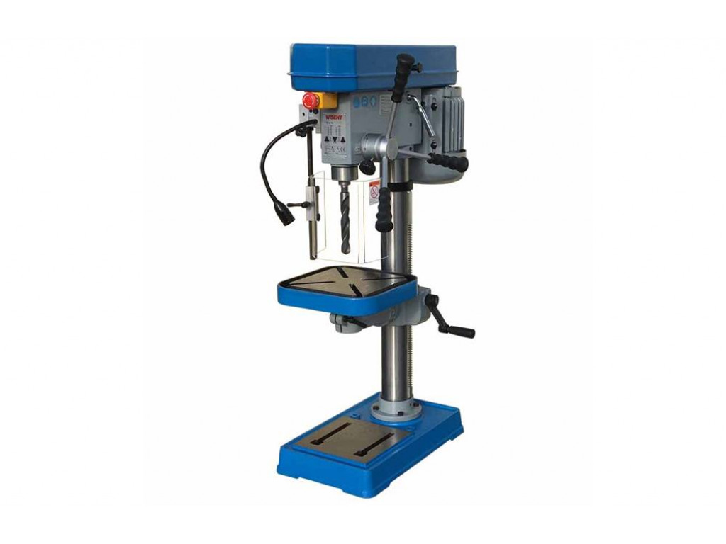 Wisent tafelboormachines zijn van professionele kwaliteit, hebben een starre constructie en zijn onderhoudsarm. Deze riem aangedreven machine is standaard uitgerust met instelbare diepteaanslag. De boortafel (280x280mm) is in hoogte verstelbaar, kantelbaar 45-0-45° en 360° draaibaar. Deze tafelboormachine is standaard uitgevoerd met een 3fase/400Volt aansluiting, maar is ook leverbaar met een 230Volt aansluiting.