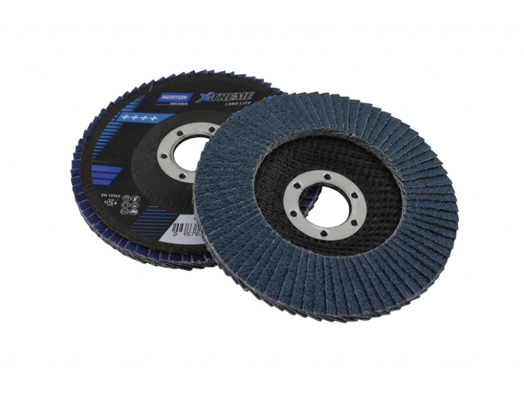 De X-Treme (ook wel XTREM) lamellenschijf wordt gekenmerkt door de Zirkonium korrel. Hierdoor is de lamellenschijf naast het bewerken van staal, ook geschikt voor o.a. RVS, inconel, chroom, cobalt, titanium en andere moeilijk te bewerken materialen. De Norton X-Treme lamellenschijf 115 mm – korrel 40 kunt u gebruiken voor diverse toepassingen zoals: afbramen, matteren en finishen. Door de lange standtijd en hoge kwaliteit worden de bewerkingstijd en de kosten gereduceerd.