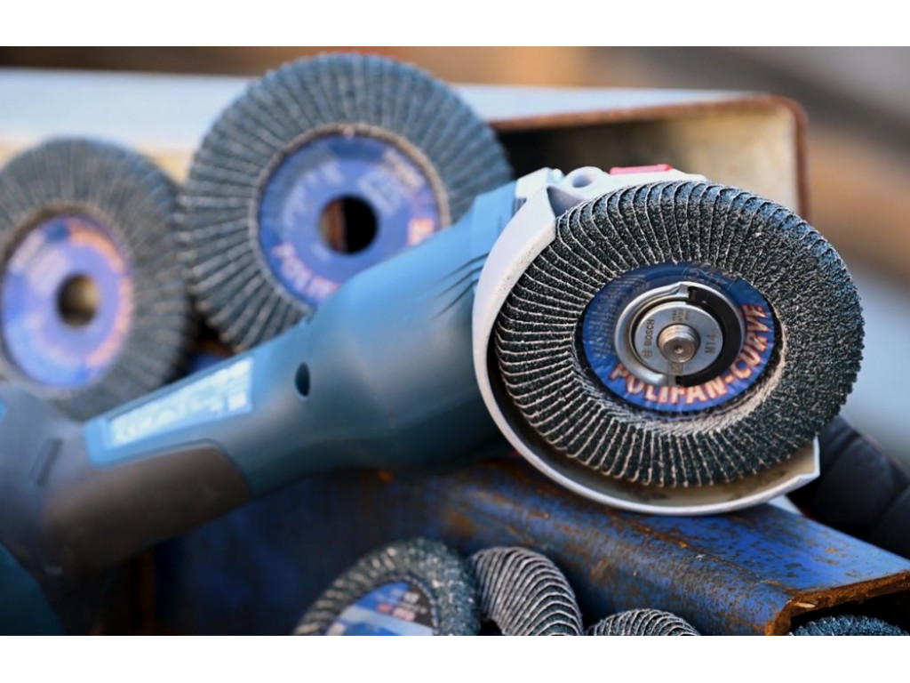 De Polifan Curve van PFERD is een unieke lamellenschijf. Deze schijf is speciaal ontwikkeld om hoeklasnaden te bewerken. De gepatenteerde PFERD Polifan Curve lamellenschijf 125-M heeft lamellen met zirkonium slijpkorrels. Deze korrels zitten zowel op de slijpkant, radius en de rugzijde. Bovendien heeft de schijf een hoeklasnaad radius van 5 mm en een schijfdiameter van 125 mm.