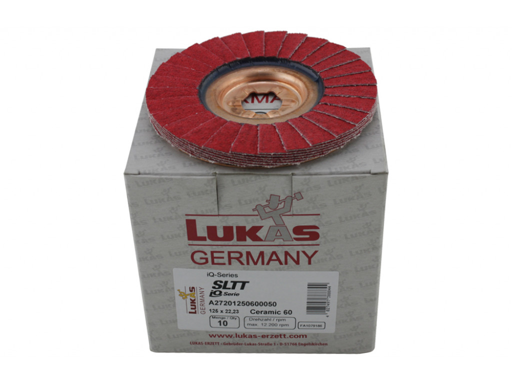 De Lukas SLTT is een Heavy Duty turbo lamellenschijf voor extreme schuur- en slijptoepassingen. Geschikt voor het bewerken van staal en RVS. De 125 mm schijf wordt gekenmerkt door de lange standtijd en extreme materiaal afname.