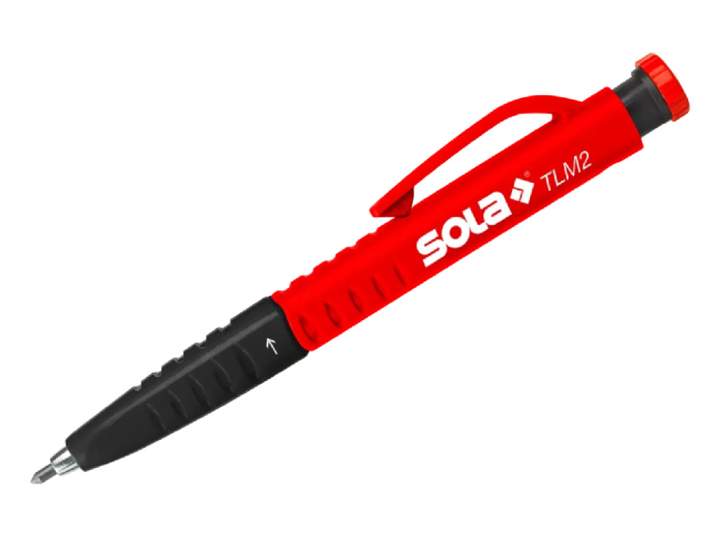 De SOLA TLM2 is voorzien van een geïntegreerde puntenslijper in de drukknop, waardoor u altijd een scherpe stift bij de hand hebt. Het stevige ontwerp en de robuuste ABS riemclip zorgen ervoor dat u het potlood eenvoudig kunt bevestigen aan je gereedschapsgordel, zodat het altijd binnen handbereik is.