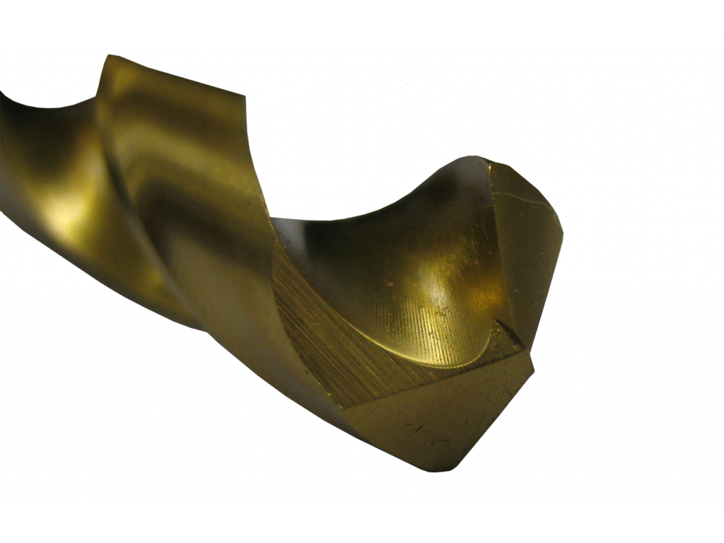 - Titanium Nitride coating op de boorpunt, voor minder wrijving en snijkantopbouw (koudlas).