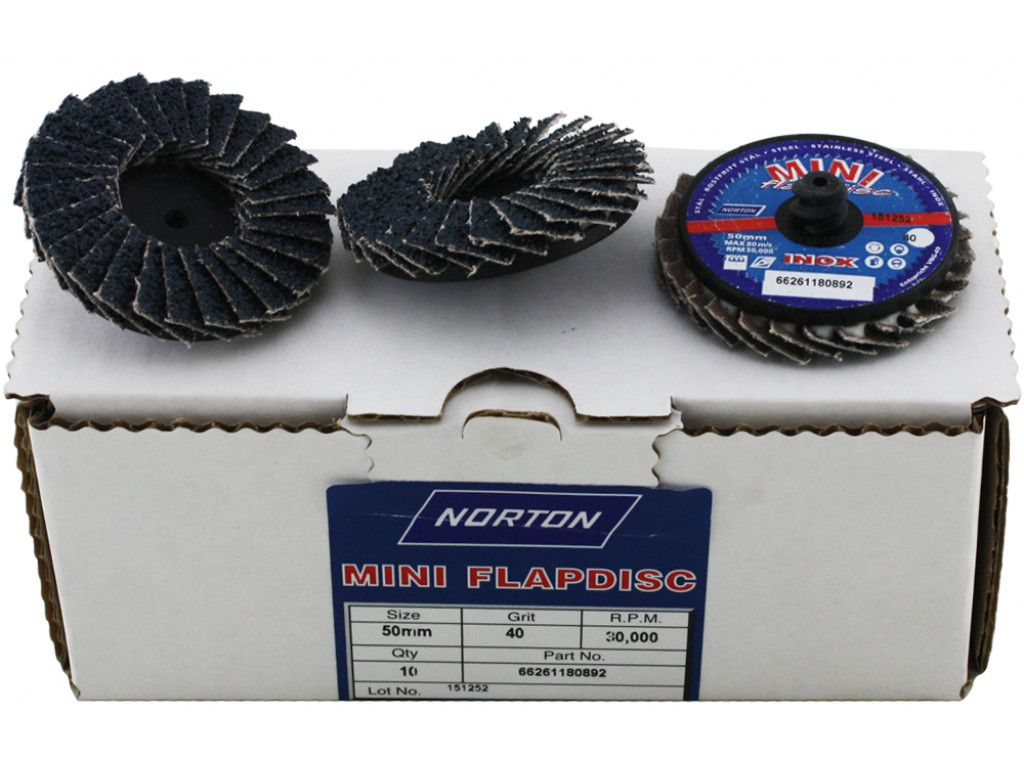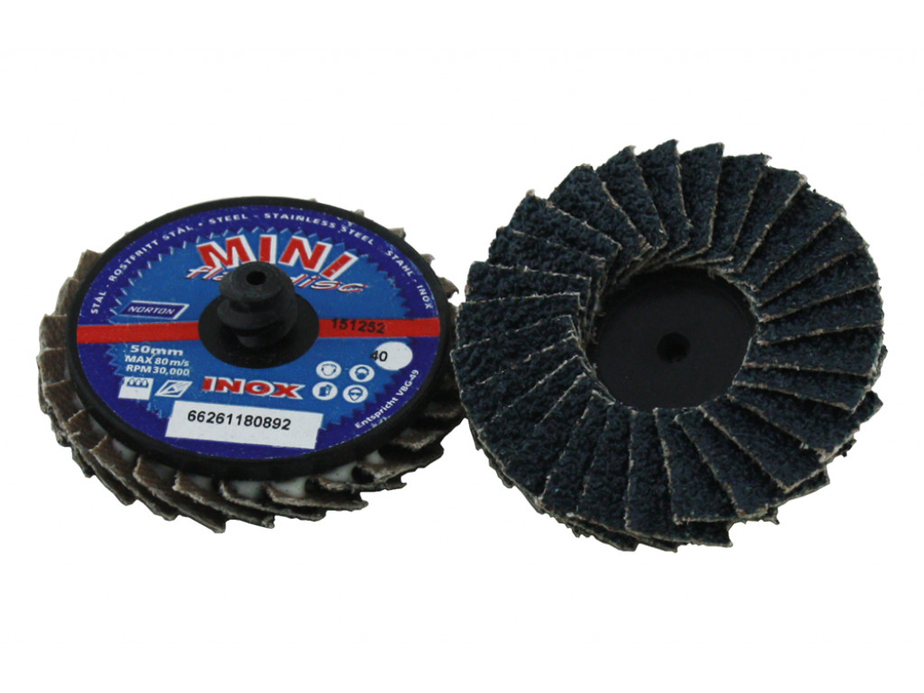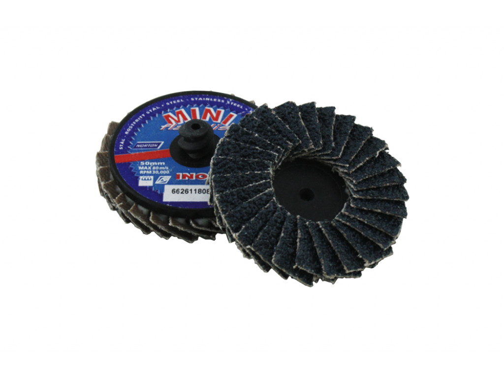 Mini Lamellenschijf 50mm - Norton Mini Flapdisc met SpeedLok (3M Roloc). Ideale kleine schuurschijven, voor snel werken op kleine en lastig te bereiken plekken.