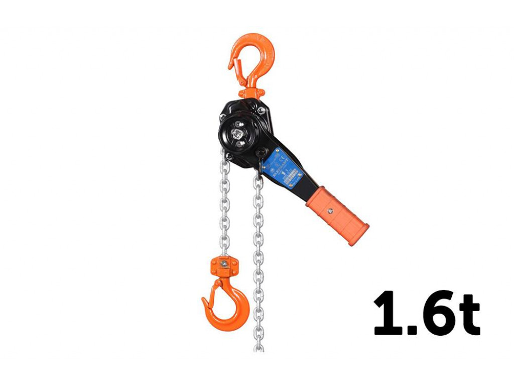 REMA YA Rateltakel 1600 kg, hoogte 1,5-6 m. Hendel met praktische rubberen anti-slip greep.