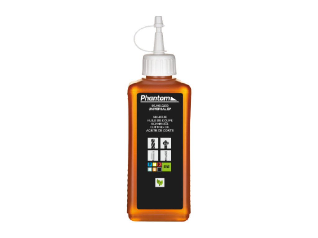 Phantom Universal EP snijolie 250 ml, Extreme Pressure kunt u ook onder hoge druk gebruiken. Deze olie geschikt voor o.a. boren, draadtappen, draadsnijden, draaien, frezen en ruimen. Bovendien kunt u de snijolie gebruiken voor bewerkingen zoals stansen, ponsen, draadrollen en licht dieptrekwerk.