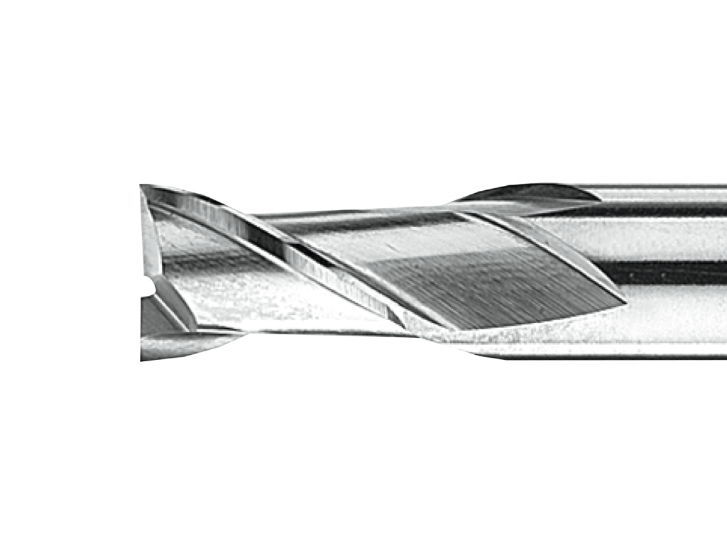 - Spiebaanfrees (2 snijder) Ø 8,0 mm x 10 mm schacht met Weldon opspanvlak.