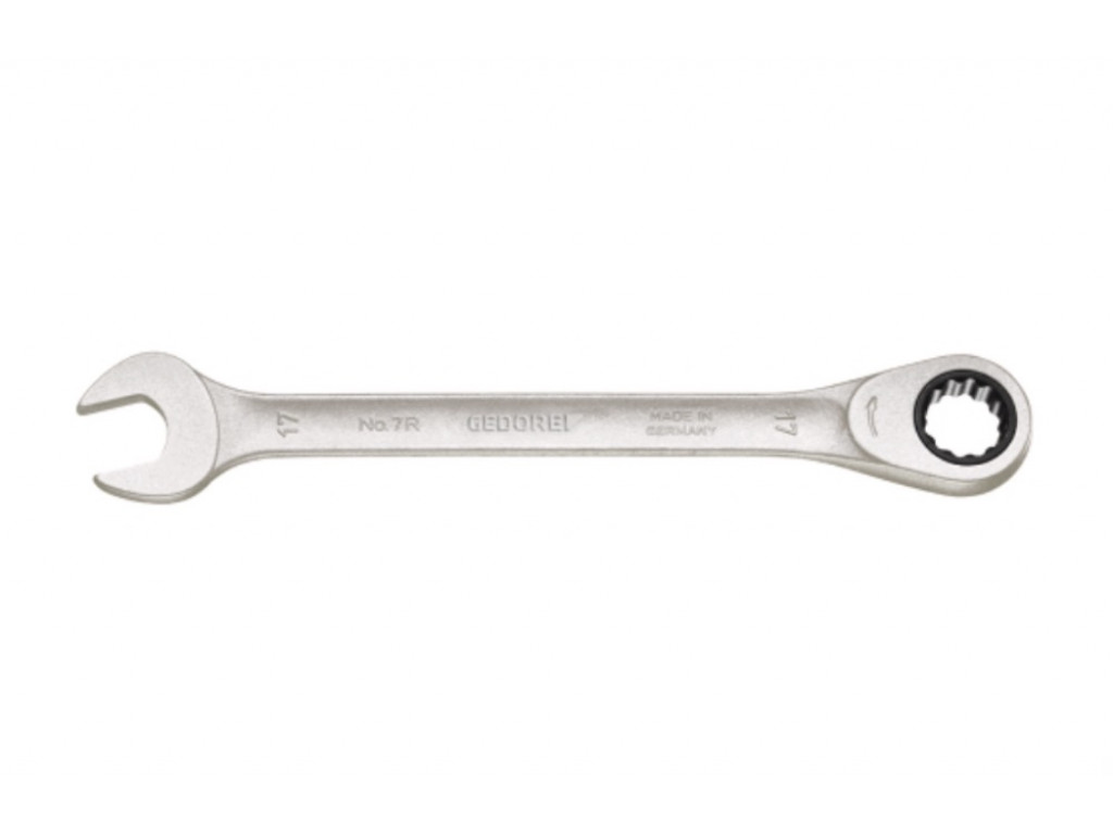 De GEDORE 7R Ringratel-steeksleutel - 9 mm is een platte uitvoering en een combinatie van de beste steeksleutel (de krachtige-nauwkeurige nr. 6) en de ringsleutel (de handzame nr. 7).