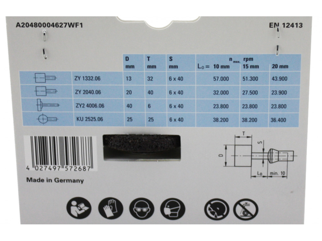 - Stiftsteen - Vorm ZY2, cilinder schijf - 40 x 6 x 6 mm stift.