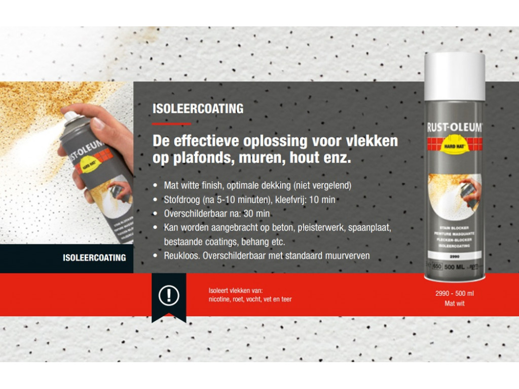 Rust-Oleum Hard Hat 2990 Isoleercoating. Ideaal om o.a. nicotine, roet- / roestvlekken en vochtplekken te isoleren.