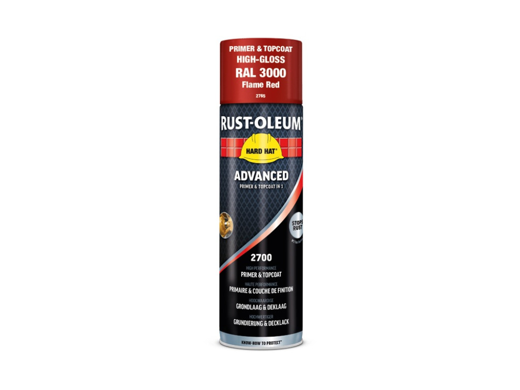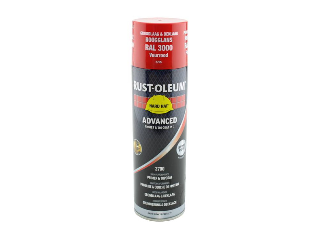 Rust-Oleum Hard Hat Advanced 2765 – Spuitbus verf, Vuur Rood, RAL 3000.