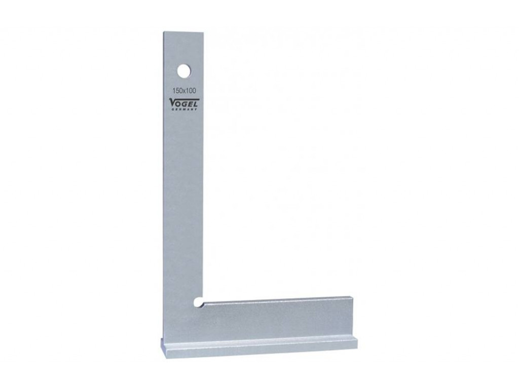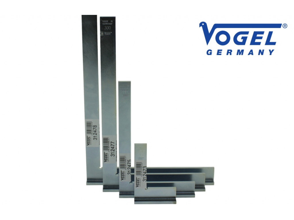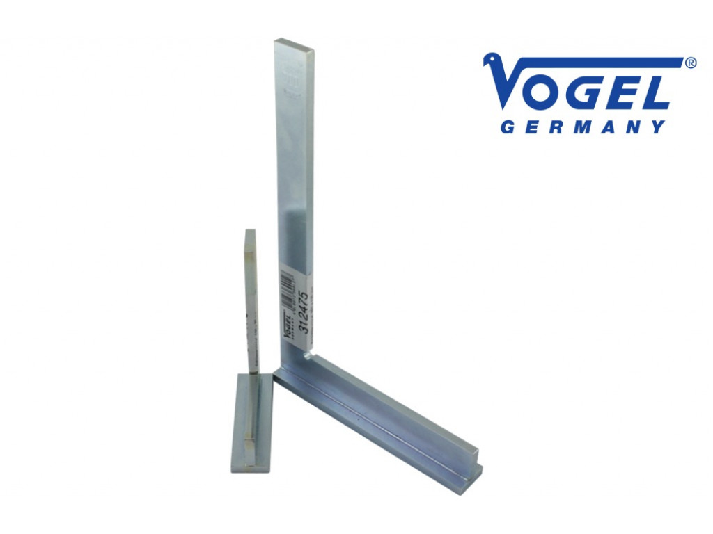 De winkelhaak met aanslag van Vogel Germany is een zeer robuuste metalen hoekhaak, met brede aanslag. De winkelhaak met aanslag (T-aanslag) kan recht op het werkstuk gezet worden, voor o.a. het zetten van haakse hoeken.