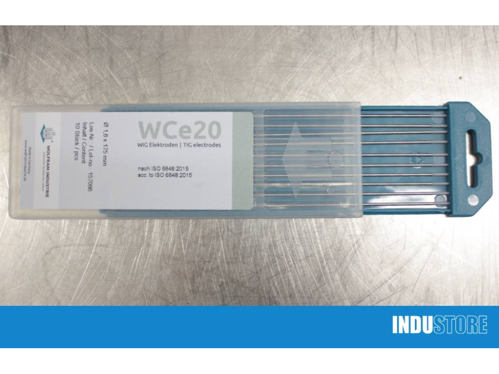 De Wolfram Industrie WCe20 1.6 x 175 mm (707205-PL) zijn premium wolfraam elektroden (kleur: Grijs). Mede door de verbeterde starteigenschappen zijn deze wolfraam elektroden bij uitstek geschikt voor gelijkstroom lassen in lager stroombereik. De WCe20 wolfraam elektrode 1.6 mm wordt o.a. gebruikt bij het TIG lassen van staal, RVS, nikkel legeringen – en ook materialen als koper en titanium legeringen.