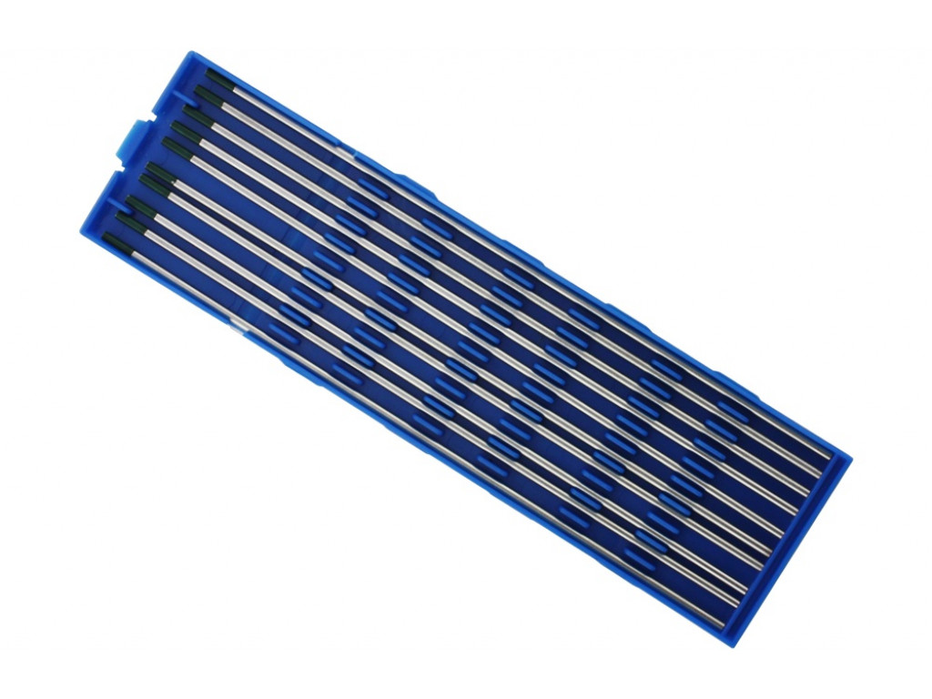 Weldkar wolfraam elektroden groen (WP), geschikt voor het lassen op wisselstroom. De wolfraam elektroden groen zijn zuivere wolfram elektroden en worden gebruikt bij het TIG lassen van aluminium.
