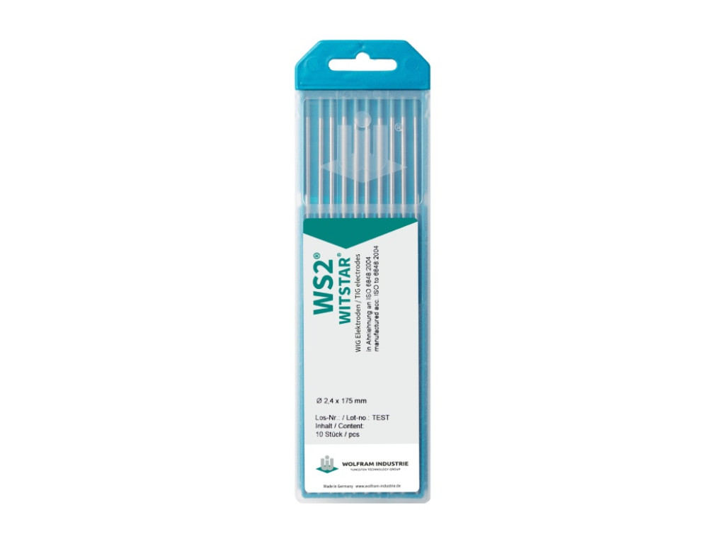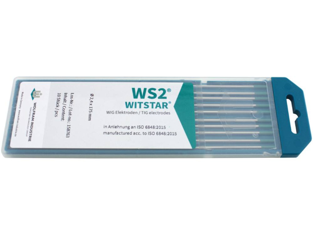 Wolfram Industrie WS2 WITSTAR wolfraam elektroden zijn geschikt voor het TIG lassen van vrijwel alle materialen, waaronder aluminium, RVS, staal, koper, nikkel legeringen en titanium. Deze wolfraam elektroden kunnen gebruikt worden op zowel gelijk- als wisselstroom, bij zowel handmatig als automatisch lassen.