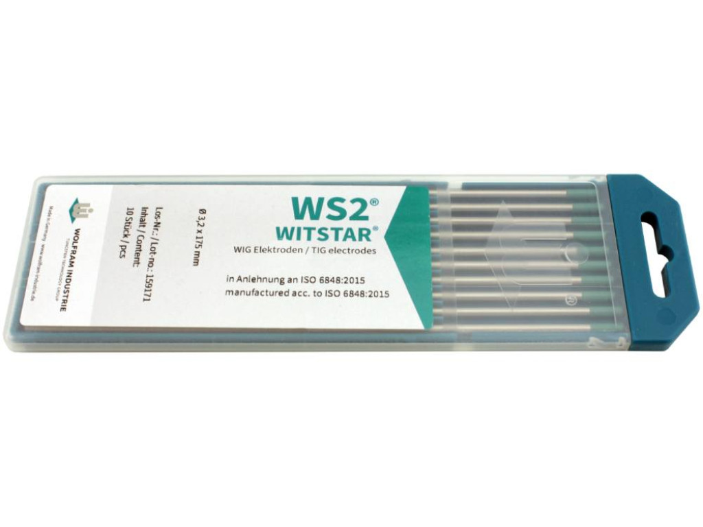 De WS2 WITSTAR wolfraam elektrode 3.2 x 175 mm (turquoise) van Wolfram Industrie zijn hoge kwaliteit TIG elektroden, geschikt voor het handmatig of automatisch lassen van vrijwel alle materialen. Zo zijn deze wolfraam elektroden zeer geschikt voor het TIG lassen van staal, aluminium, RVS, nikkel legeringen, koper, zirkonium en titanium.