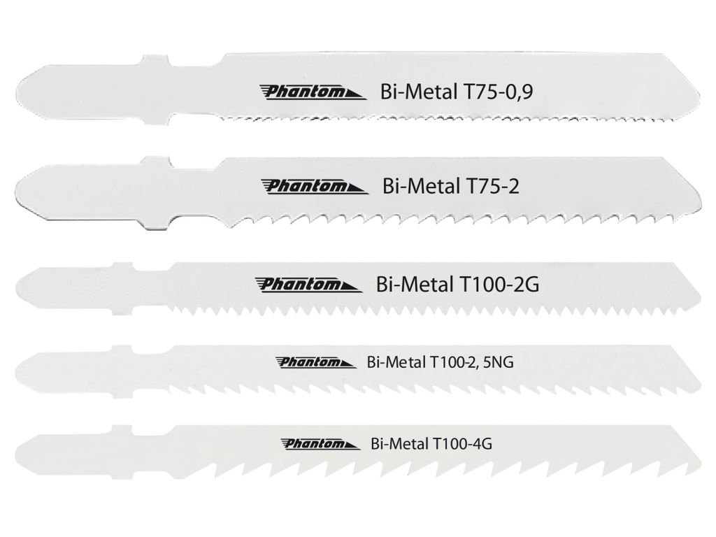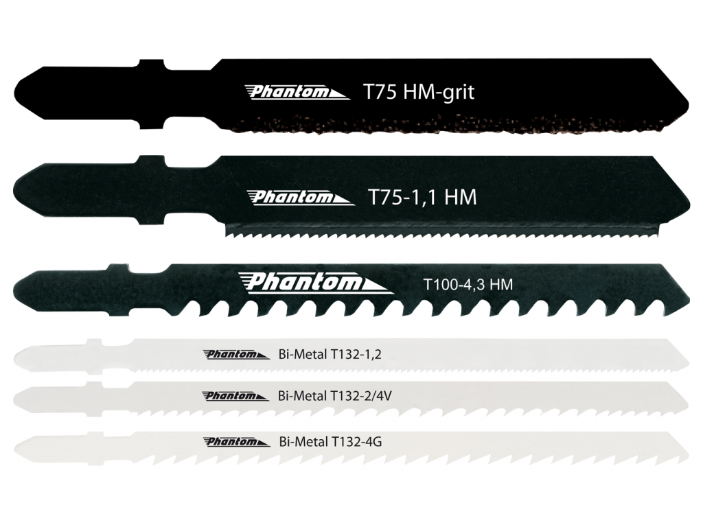 Phantom decoupeerzaagbladen uitgevoerd in Bi-metaal, HSS, HM en HM-grit.